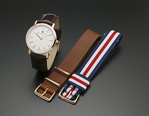 -. Feature : 【サイズ】(直径)38mm x (厚み)75mm 重量:約35グラム / 【素材】(ケース)ステンレススチール (ベルト)本革レザー (替えベルト①)ナイロン (替えベルト②)レザー / 【機能】替えベルト2種付き(NATOタイプストラップ レザー・ナイロン) ※工具なし、ベルト交換可能なイージーレバー仕様 3気圧防水 / 【付属品】 ボックス、保証書、取扱説明書 / 【付属の時計拭きクロス】素材:アクリル サイズ:(縦)約20cm x (横)約20cm 大切な腕時計を綺麗に保っておくためのクロスです。 時計ケースやバンド、風防を拭くためご使用ください。