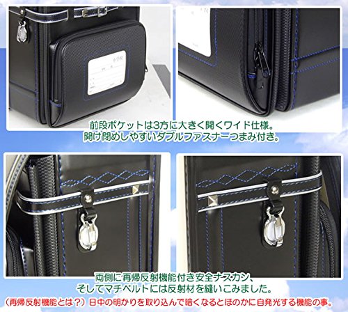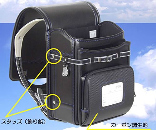 2018년도 모델 피트상 엠블럼 란도셀 카본 스탓즈 모델 ≪검정(본체)×블랙(스텟치) ≫ 적당한 염모델 A4포켓 파일 대응 와이드크기