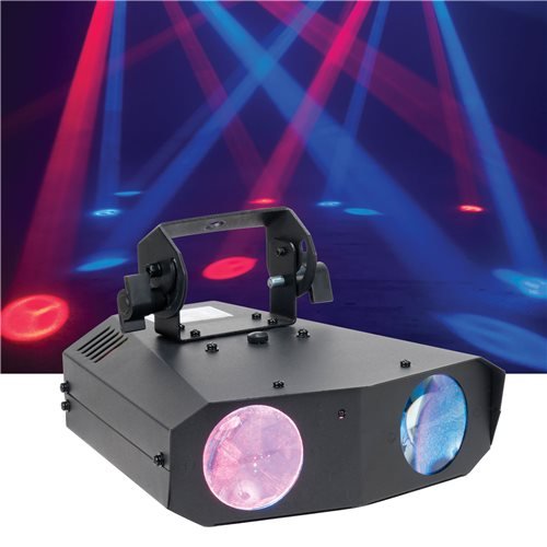The ADJ Monster Duo is a dual lens high output Moonflower effect that is powered by 18 1-Watt RGBWA LEDs. It covers a large area of a dance floor and bring pure lighting excitement to any party .The fixture features stand alone and master/slave configuration with 3 operational modes: Sound Active, Show Mode or DMX Control. There is a safety loop on the rear panel as well to be used with safety cable.