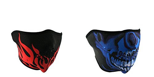 -. Title : Bundle (2 Items): 1 ZanHeadgear 'Red Flames' Half Face Neoprene Face Mask -AND- 1 Zan 'Blue Chrome Skull' Half Face Neoprene Face Mask, Ski Mask