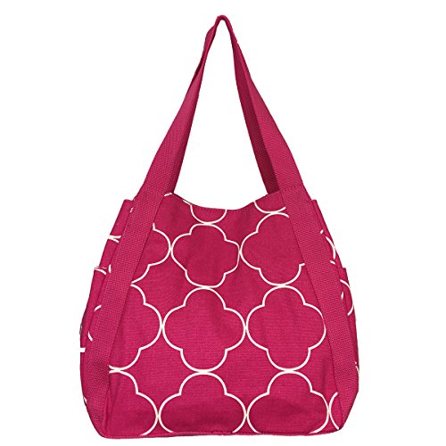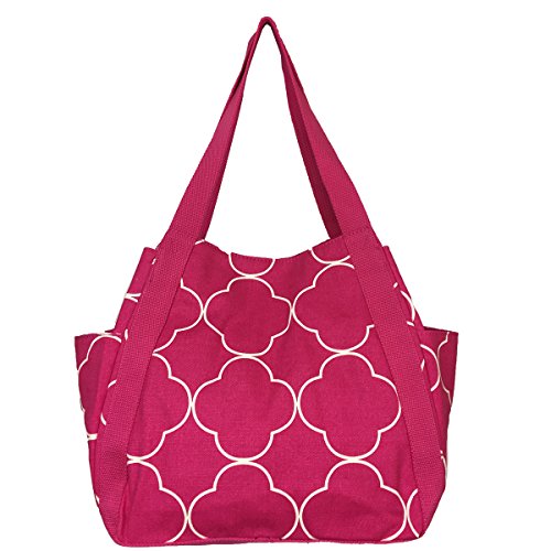 -. Feature : 100% sturdy cotton canvas with strong canvas stripe handle / Secure your contents while easy accessing with magnetic button snap closure / Matched color Polka Dot P.R.Ints liner with 2 interior wall pockets for easy access to keys, phone, etc; One interior zippered pocket provide security for valuebles. / Easy carry design, 10" shoulder drop ensures a comfortable fit / 14" bottom width, 12" top width, 12" height (22" with handle), 9" depth