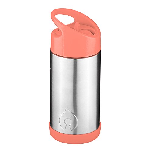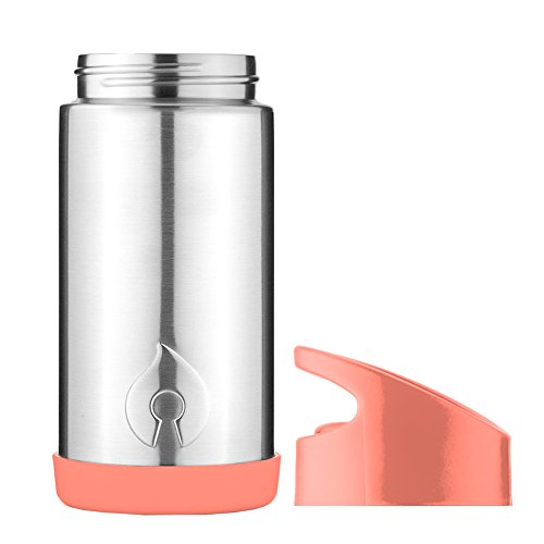FIREKI Vacuum Insulated Stainless Steel Straw Bottle with Spout and Handle (10 oz, Coral)