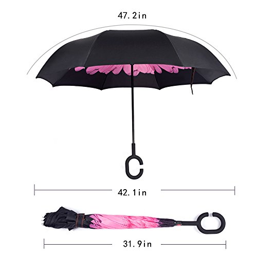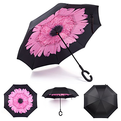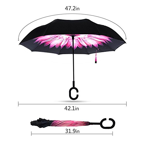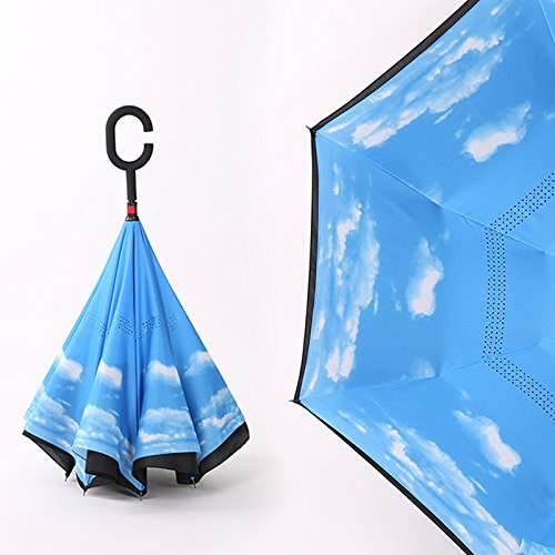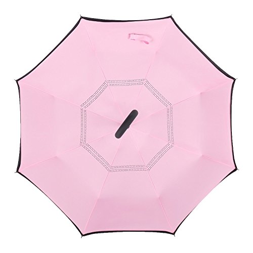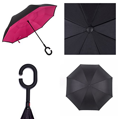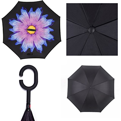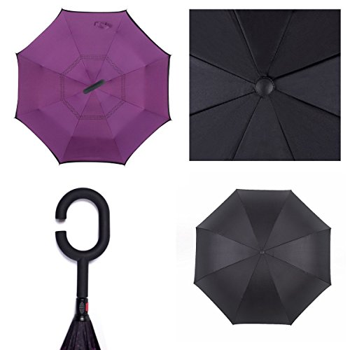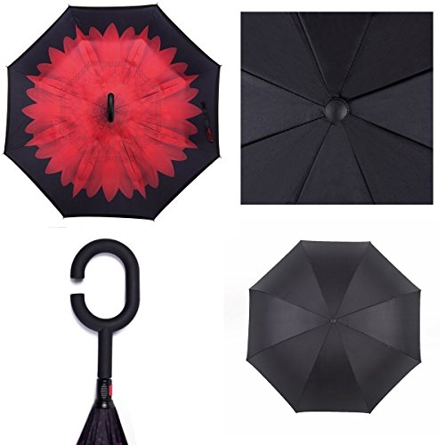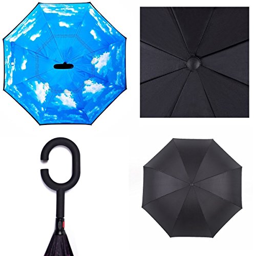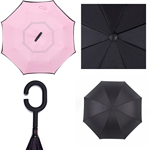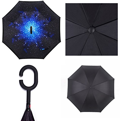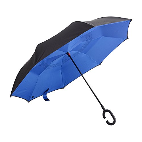 Studio : Top-Elecmart Publisher : Top-Elecmart Binding : Misc. Product Description EverKing Double Layer Inverted Umbrella Cars Reverse Umbrella Double layer Inverted umbrella Unique design double layer inseide out umbrella, make it easy for you on raining day,won't wet your car, documents or others. Advanced double layer ribs made the inverted umbrella more sturdy. 23 in X 8 Panels is large enough for Many People . Easy to Operate and Safe to Use With a simple click of the embedded button, you can open and close the umbrella in confined spaces when entering or exiting a building or car and it's less awkward and more safer to open and close when in crowds, since the danger to poke in people's eyes has been removed by the design. Convenient to place and drip free It can stand up on its own, ideal for when you have nowhere to prop your umbrella up against. It will also keep the wet part of the umbrella inside once you've closed it, so things don't get dripped on when you put it away after coming indoors. Durably windproof The straight umbrella easily slices through all winds. Due to its aerodynamic design, the umbrella always finds the most comfortable position in the wind which makes it exceptionally pleasant to use, even in strong gales. If the canopy flips, it can be rectified at the push of a button. Specification: Product Name: Inverted Umbrella, Upside Down Umbrella Fabric Material: double layers high-density water repellent fabric Rib Material: carbon fiber high hardness skeleton Control: Non-automatic Pacakge includes: 1x inverted umbrella Warranty: 24 Months Warranty. If there is any problems, pls feel free to contact us soon, we will try our best to solve it for you. 0