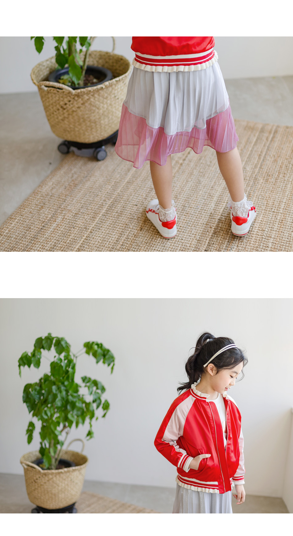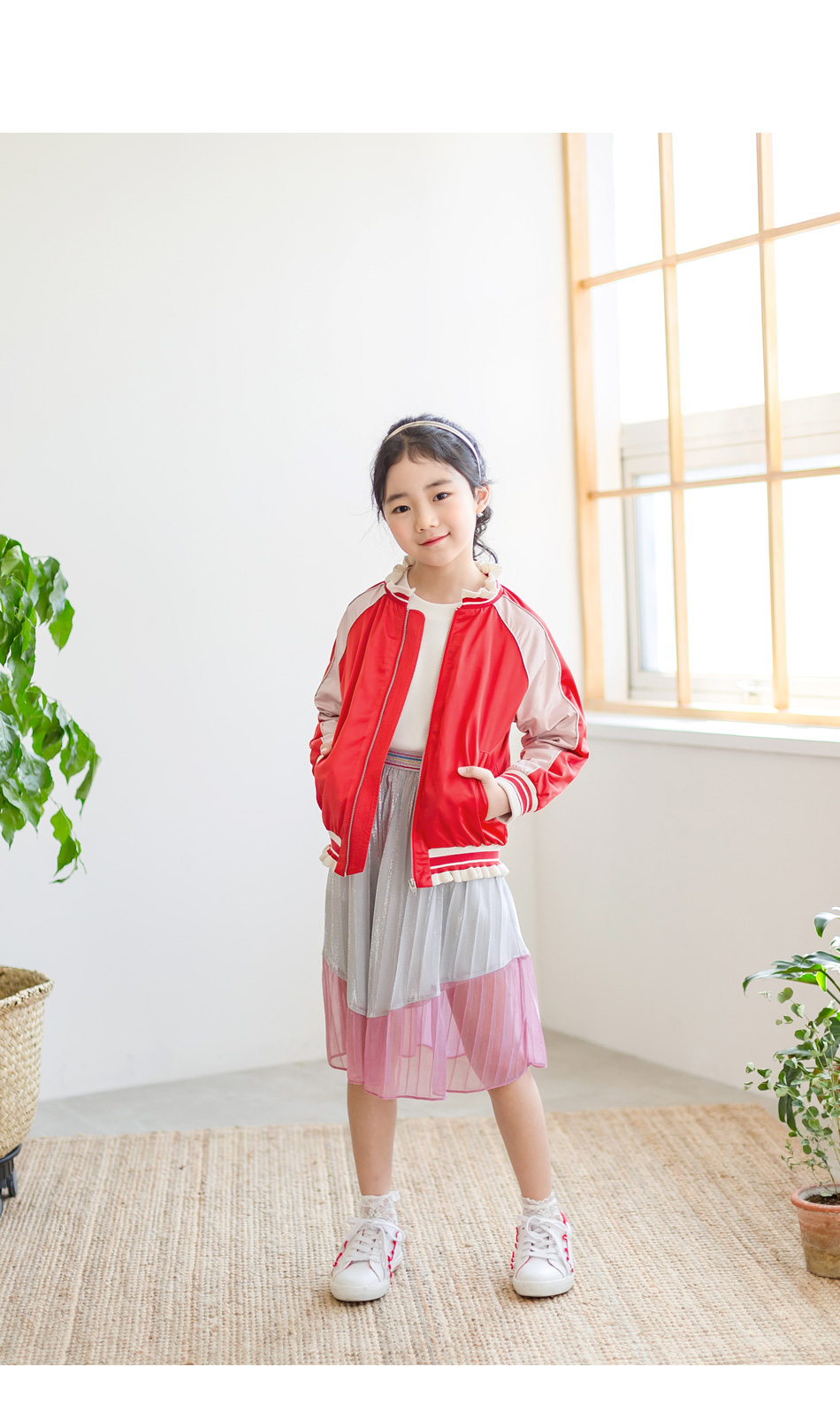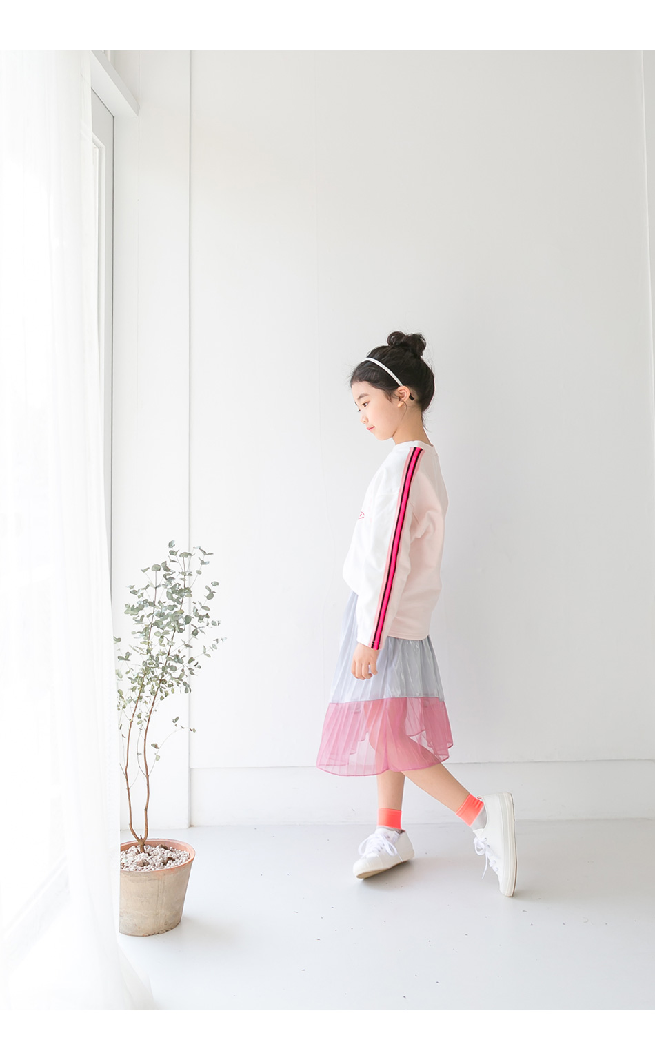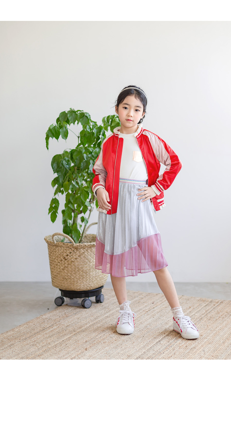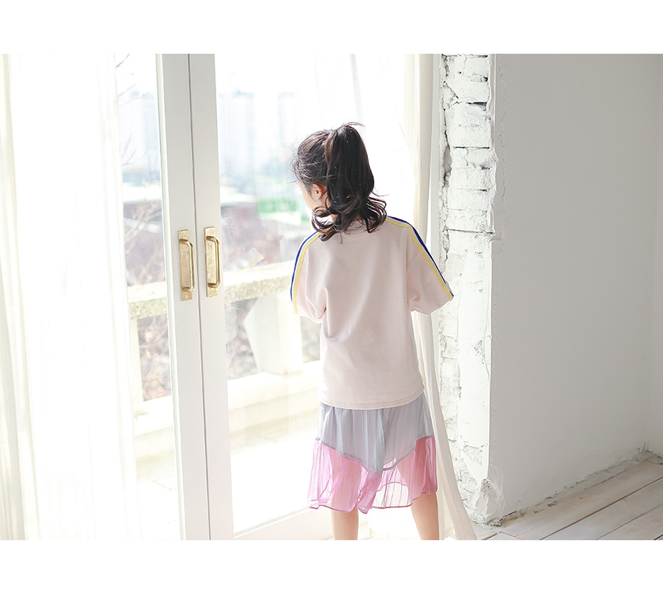 찰랑이는 밑단 핑크색 라인엔 안감없이 단독이라