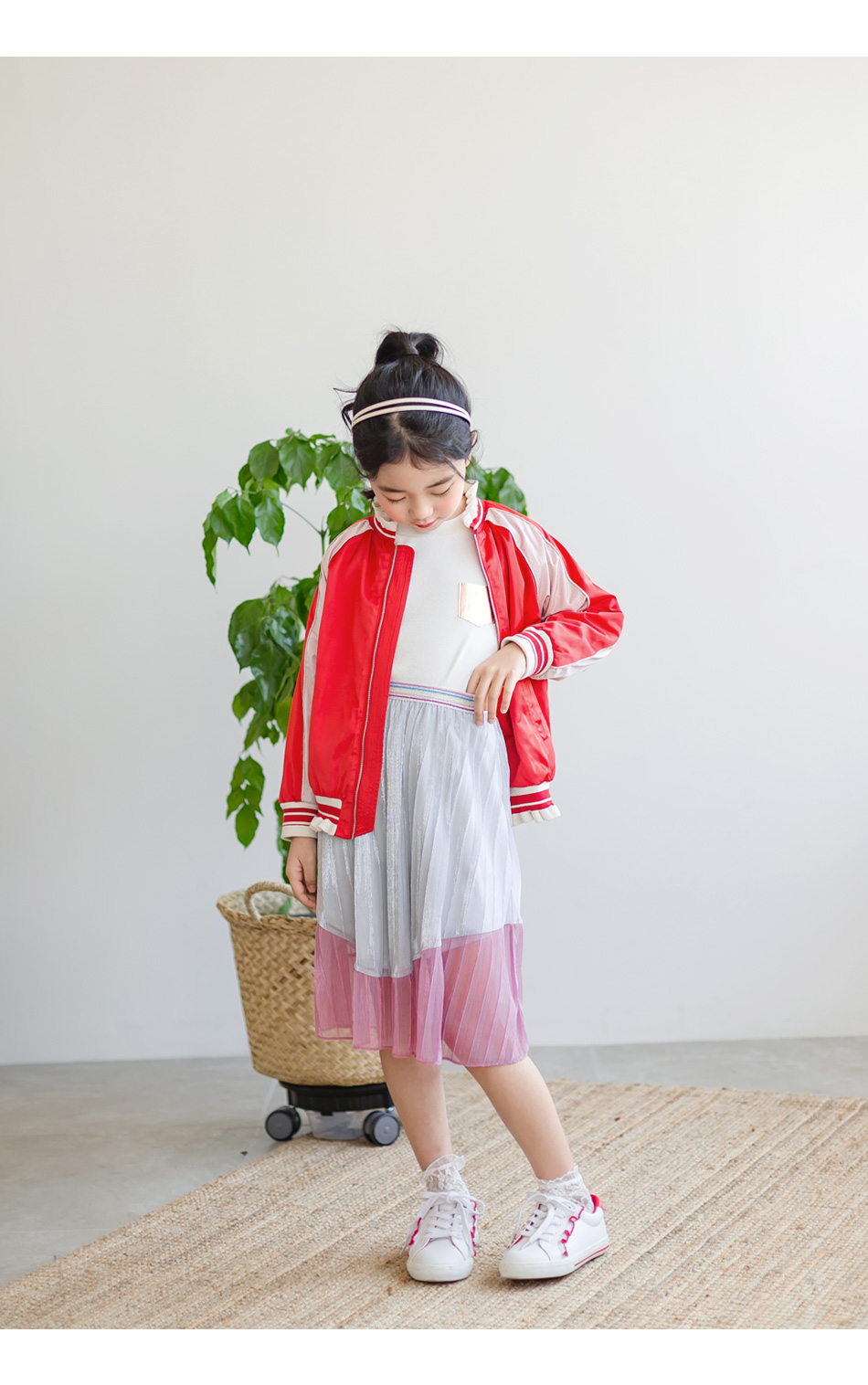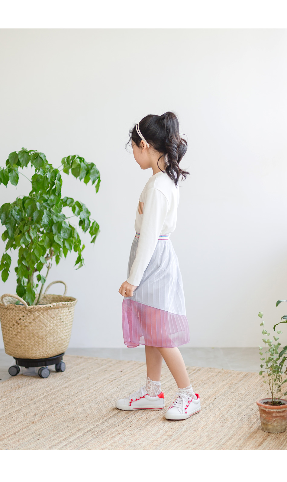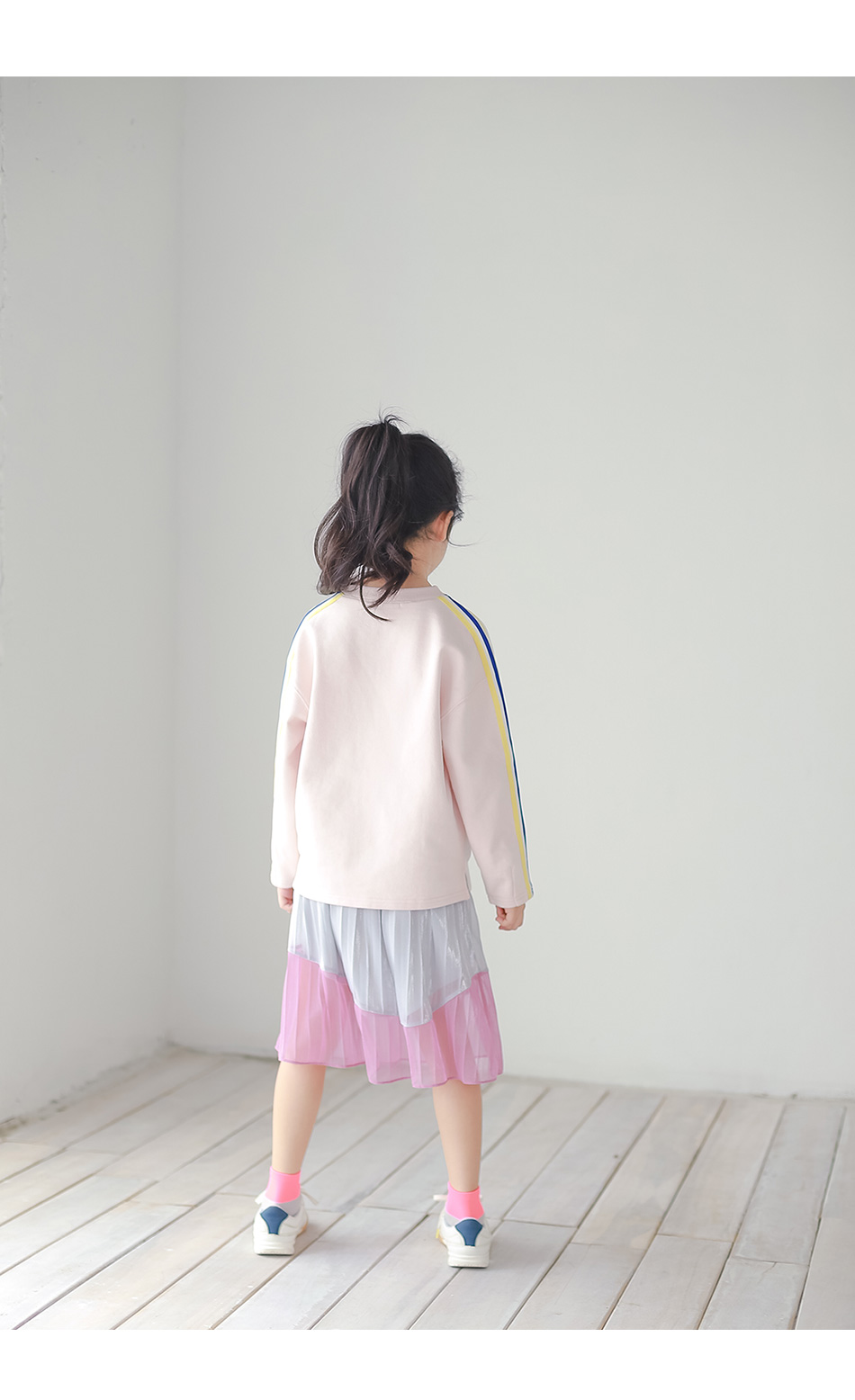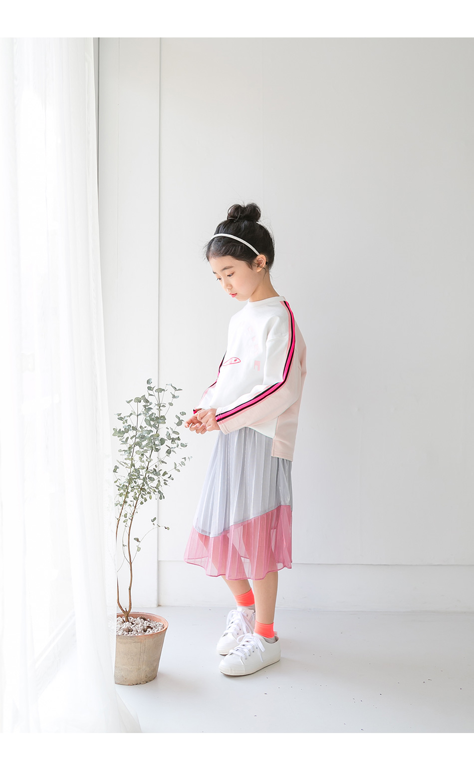 찰랑이는 밑단 핑크색 라인엔 안감없이 단독이라