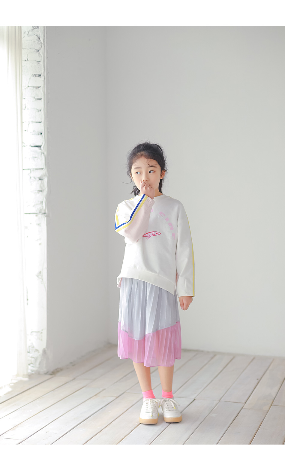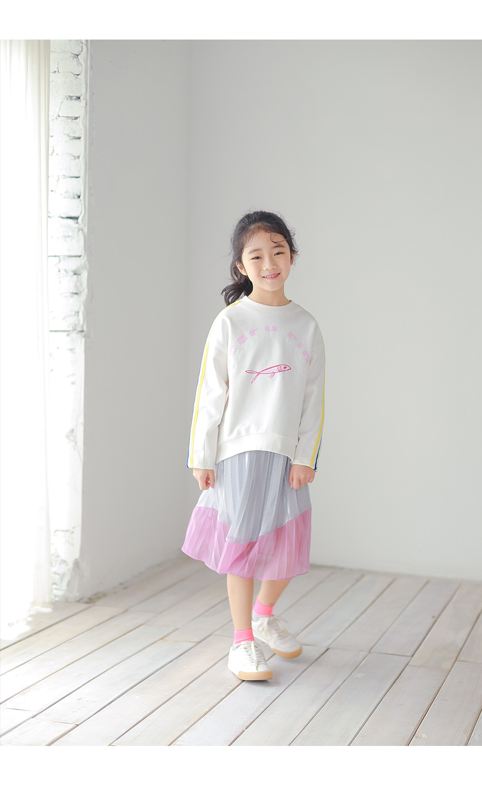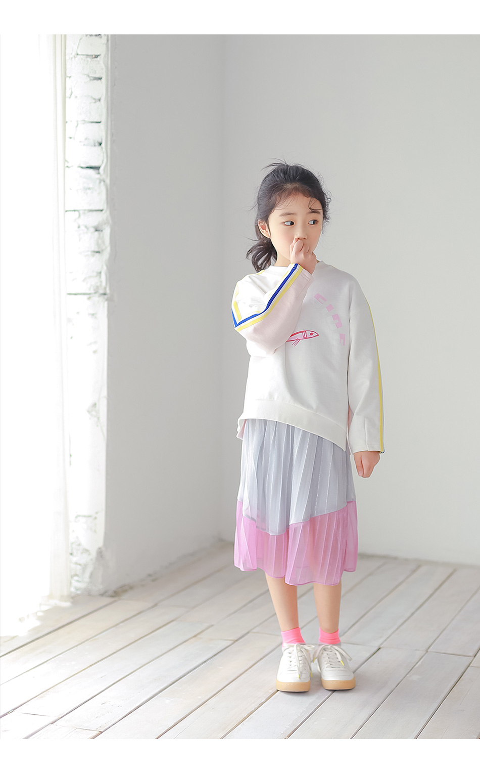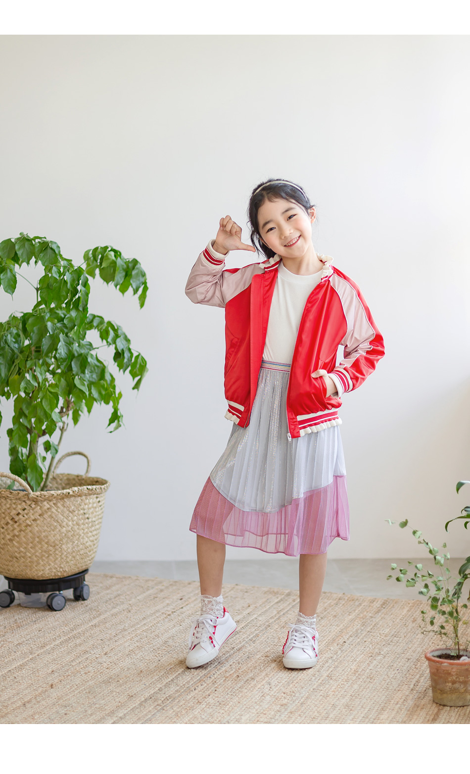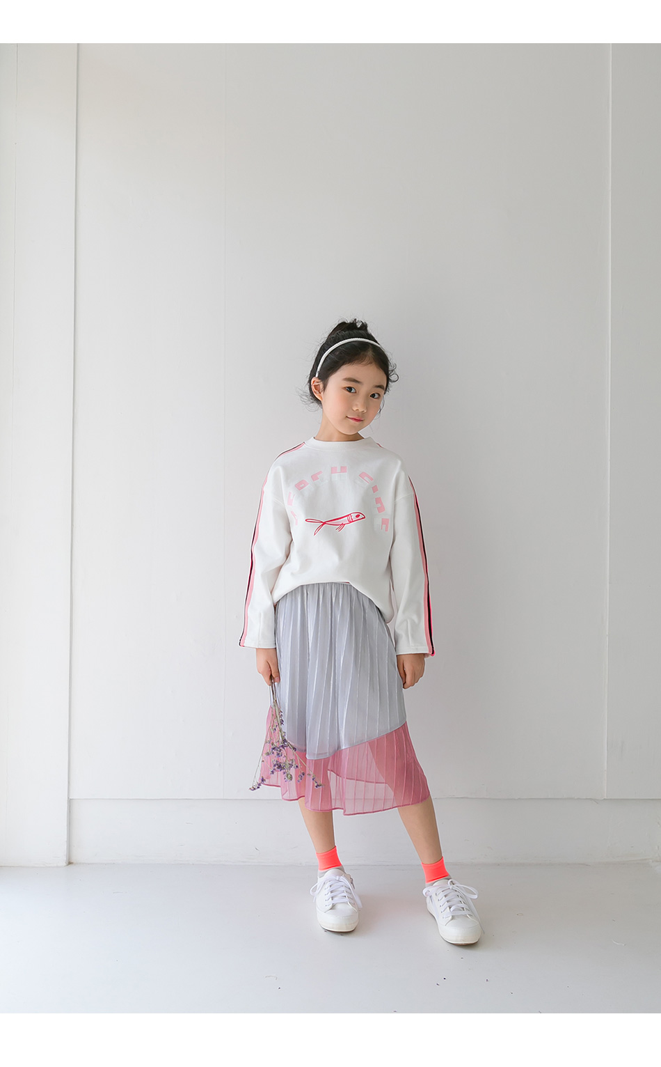 찰랑이는 밑단 핑크색 라인엔 안감없이 단독이라