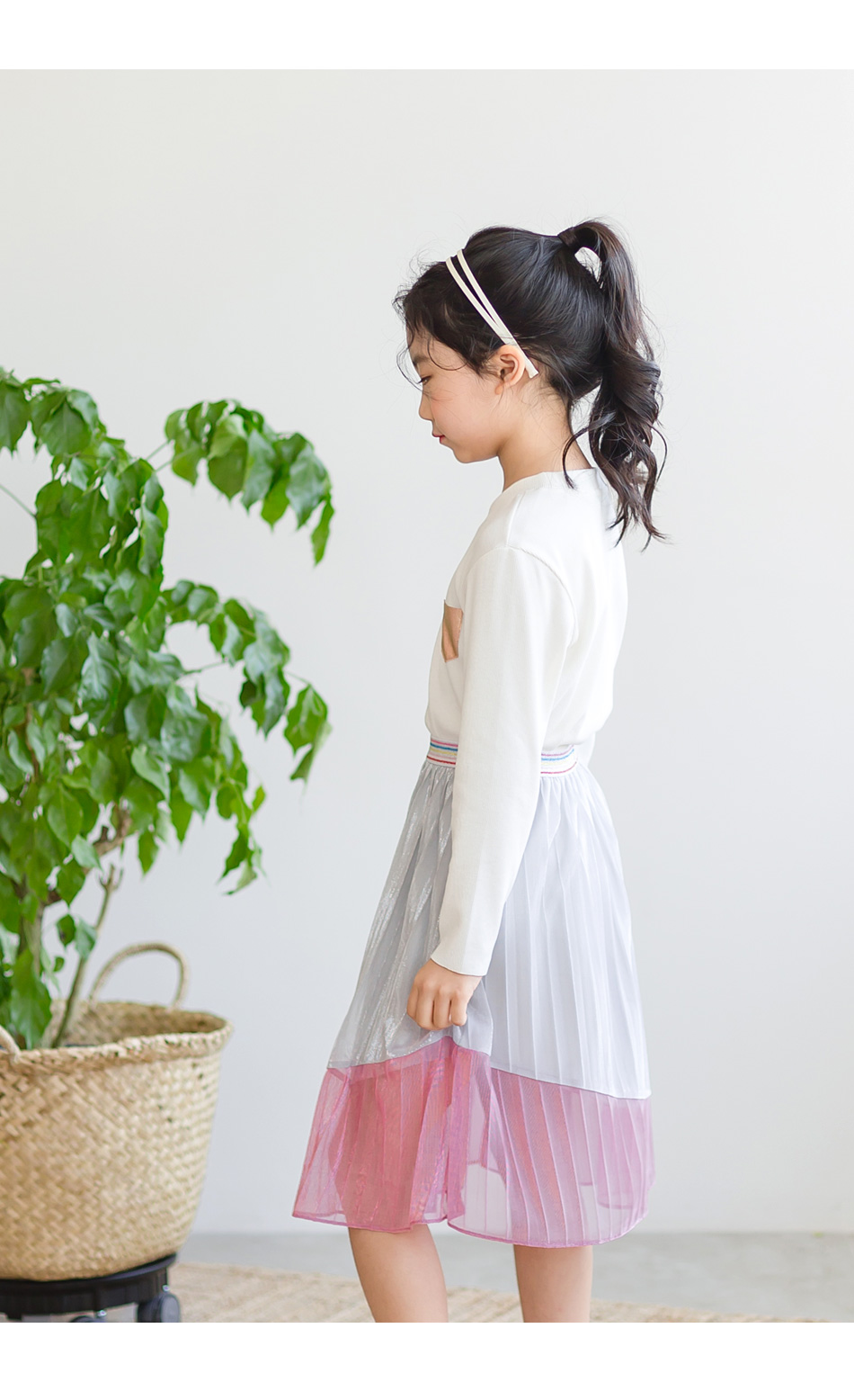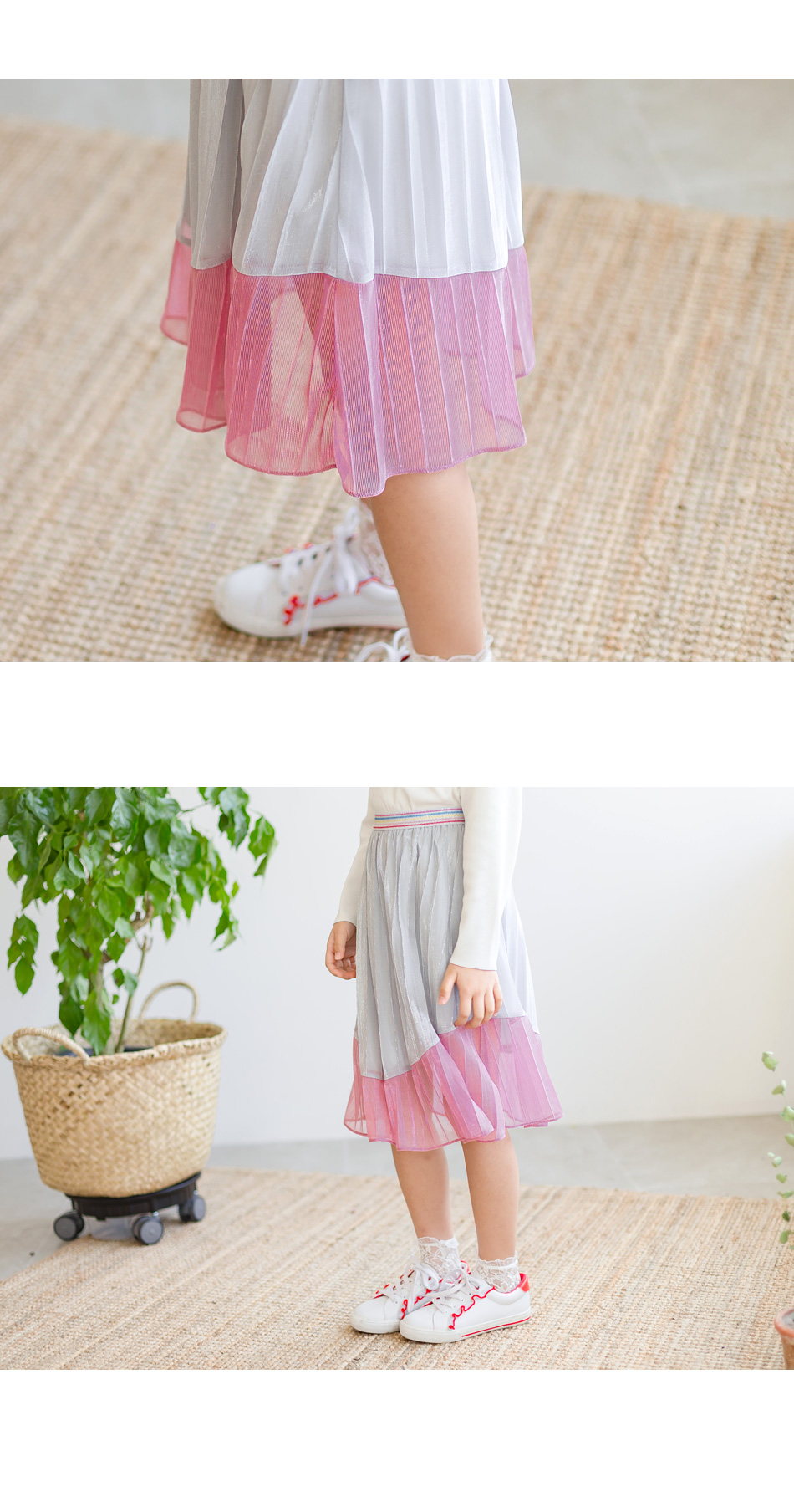 은색과 핑크색 이층으로 블록된 스커트인데요