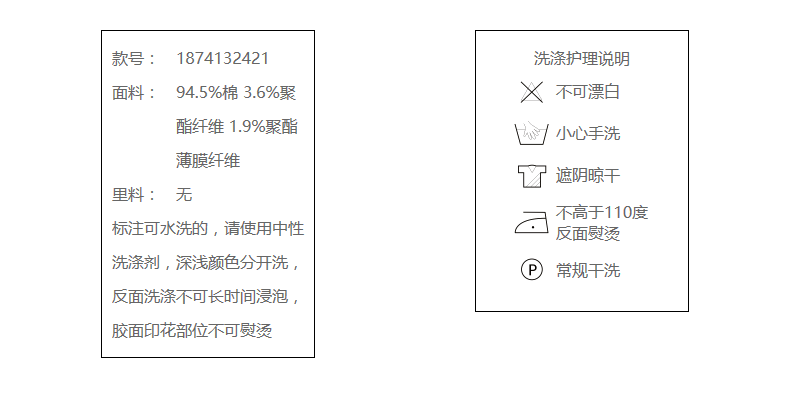 94.5%棉 3.6%聚酯纤维 1.9%聚酯薄膜纤维
