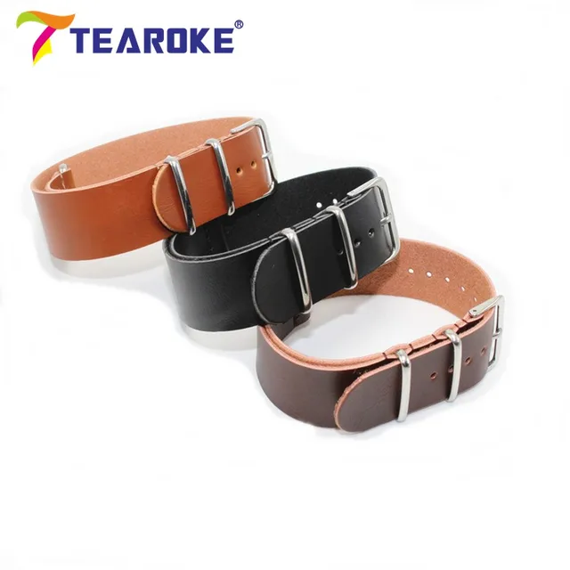 | [해외]TEAROKE 손목 시계 스트랩 ZULU 가죽 스트랩 시계 밴드 미친 말 Leahter 18 미리메터 20 미리메터 22 미리메터 NATO 브라운, Blackstrap |