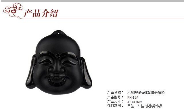 开光天然黑曜石磨砂护身佛女项链笑面弥勒佛吊坠