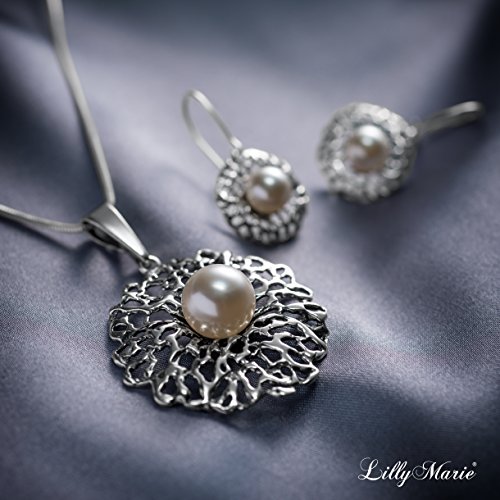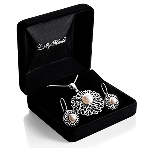 LillyMarie Damen Schmuck Set Silber grosser Anhanger mit original Swarovski Elements Perle langen-verstellbar Geschenkbox, beste Geschenke fur Freundin