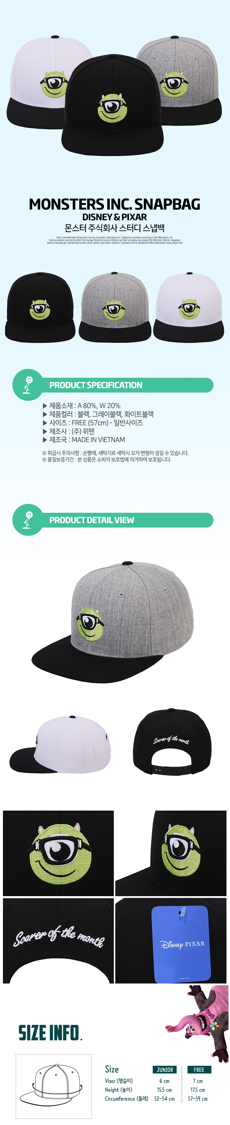 Disney Pixar Snapback Monster Inc. Study