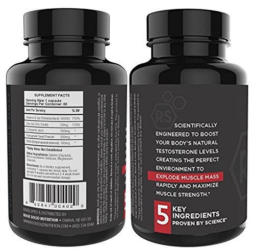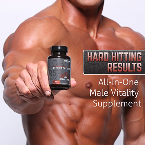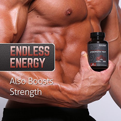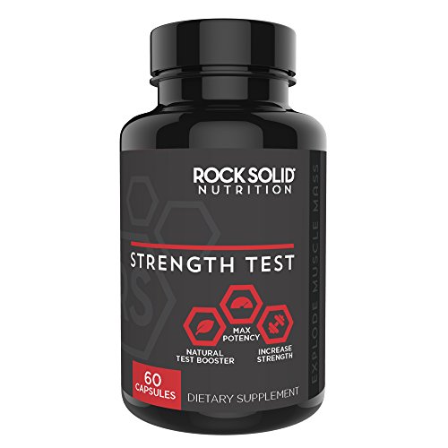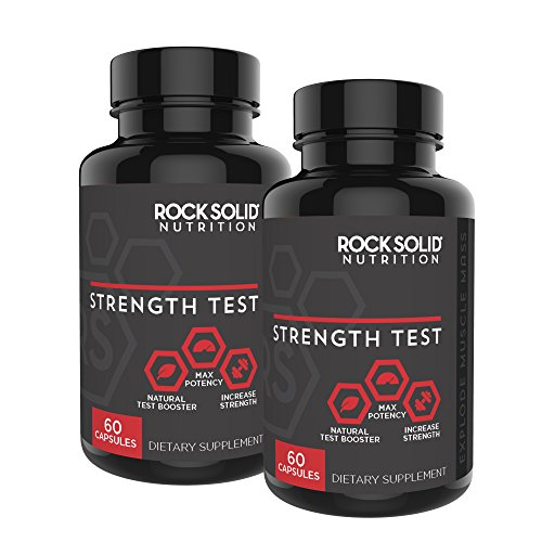Rock Solid's Strength Test will be your go to dietary supplement for increased performance and naturally enhanced endurance. Recapture your youthful strength and stamina by replacing lost or low testosterone. Designed to help naturally increase your circulation and blood flow, Rock Solid boosts libido and endurance giving you confidence in the gym as well as the bedroom. This one of a kind formula helps combat feelings of lethargy and loss of muscle mass to deliver the best results possible. Gain muscle mass while working out longer for fast noticeable results, feel the effects in hours with the ultimate energy boost. Testosterone is your body's most anabolic hormone creating the perfect environment to explode muscle mass rapidly and add strength to lift weight you never thought possible. Naturally increase your body's production of testosterone without the side effects that come from pro-hormones or steroid use. Strength test focuses on five of the strongest natural boosters, all of which have been scientifically proven to increase testosterone with the amount used in a serving of this product. WARNING: Using this product is likely to cause feelings of insecurity and jealousy among fellow gym members and may enhance number of stalkers.Feature