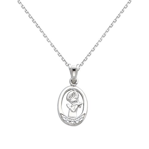 -. Title : 14k White Gold CZ Prayer Pendant with 0.9mm Cable Chain Necklace