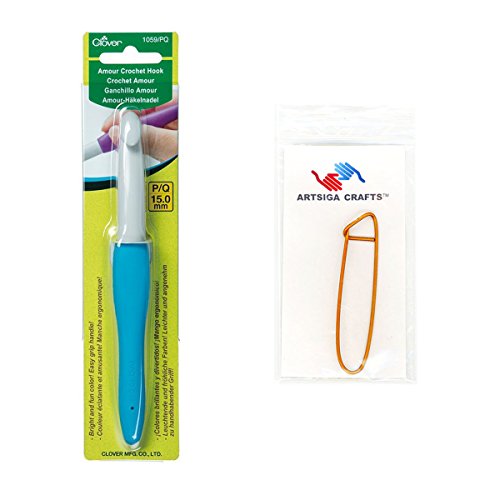 - Bundle includes 1 Clover Amour Crochet Hook Size P/Q/15mm with 1 Artsiga Crafts Stitch Holder 1059/PQ
