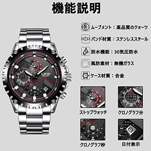 その他 機能:クロノグラフ, 夜光インデックス , 30気圧防水, 日付表示