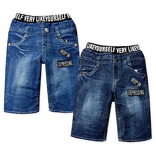 -. Title : 子供服 男の子 デニム ハーフ パンツ AIR RAID ボトム ストレッチ ウォッシュ加工 ワッペン ロゴプリント ウエストゴム 男児 ジュニア