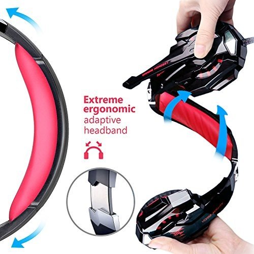 HUMANIZED DESIGN It has self-adjusting head beam base on required size and space, that is amazing for game players who are involved in a long time on the game. It weights light that usually forget the headset on your head that bringing such wonderful experience for players while using it. Furthermore the microphone is flexible to adjust. LED light design makes it fashion.