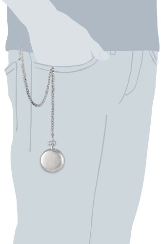 -. Feature : Chrome satin finish brass 50mm hunter case with a matching curb chain / Skeleton dial with roman numerals / 17 jewel mechanical movement / Deluxe gift box