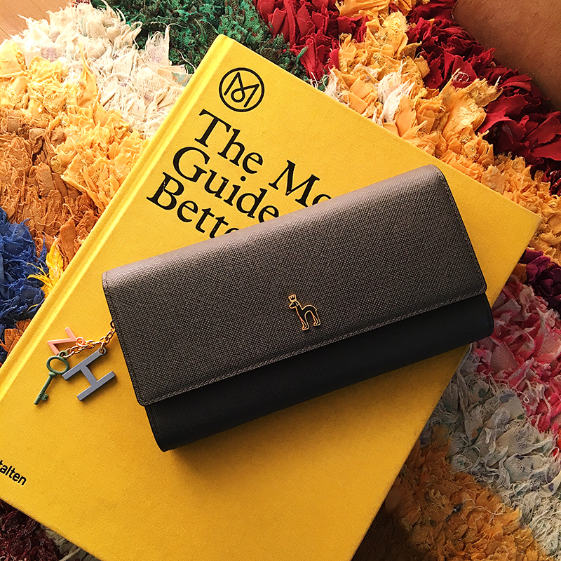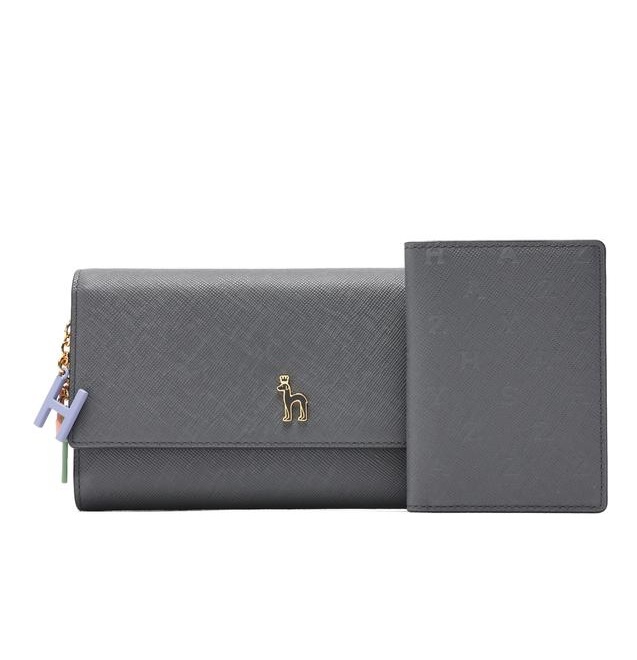 고급스러운 사피아노 가죽 바탕에 퍼피 로고 장식으로 포인트를 준 장지갑입니다.