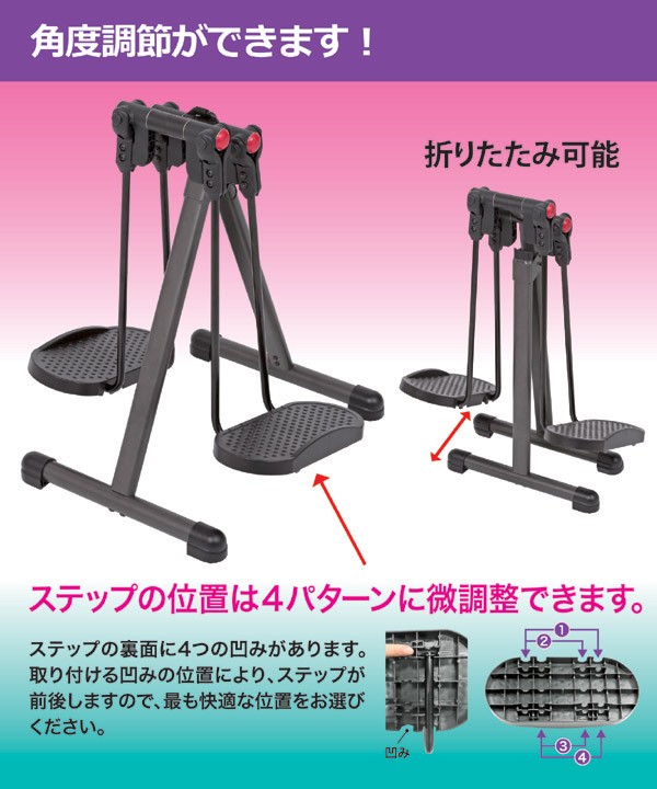 脚の筋肉の衰えは身体の衰え、と言われるほど大事な部分です。歩いたり走ったりと運動方法はありますが、「疲れる」「汗をかく」などがイヤだ・・・というアナタでも始めることができる新発想の運動マシンです。イスに座り、マシンに脚だけを乗せて前後左右へと自由に脚を動かしてください。動き方によって太もも、ふくらはぎの筋肉を動かせます。歩行や走行とは違い、脚にかかる負担が極端に少ないため、脚に自信が無い方でもご使用いただけます。