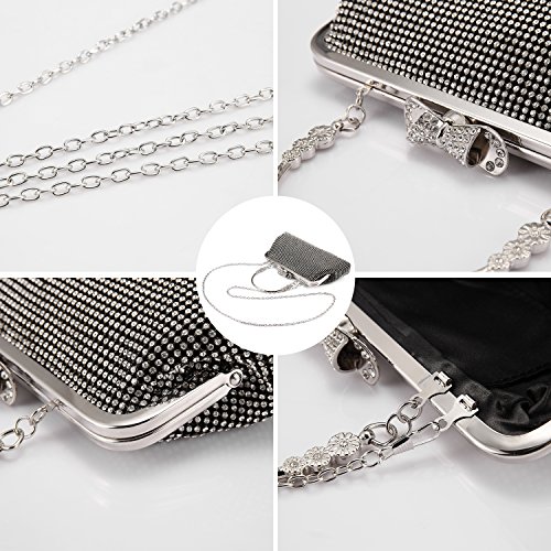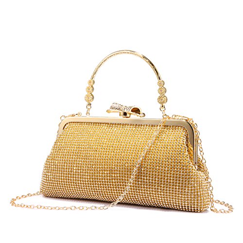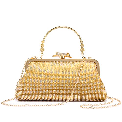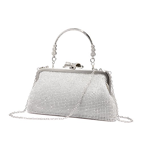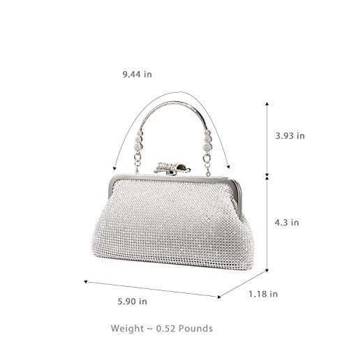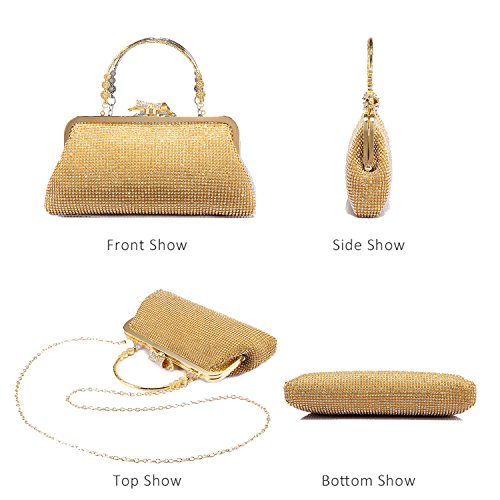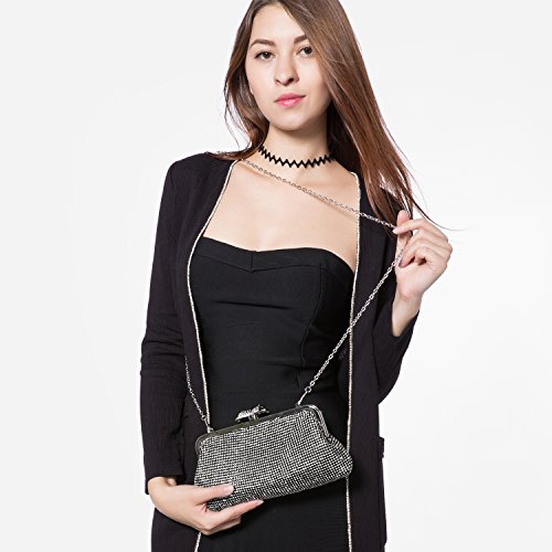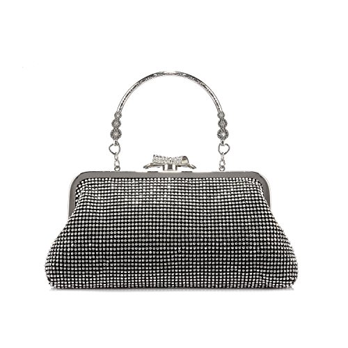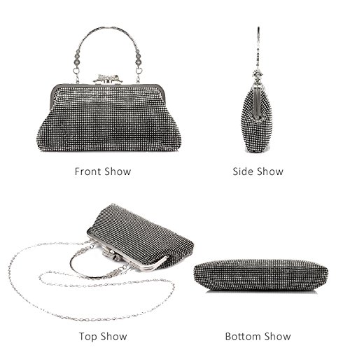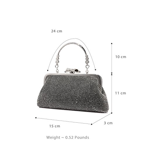 Features? 1.Priced affordable, presented nicely. This clutch bag is exactly what you need for the perfect night out. The gorgeous handbag is really sparkley, spacious enough to keep your essentials: a cell phone, home and car keys, ID card, credit cards, some money and make-up. It will become a versatile and a very useful part of your party / cocktail / evening / weddings / prom outfit. Different colors can match different outfits. 2.All metal parts are high quality. The evening clutch comes with a vintage handle, which is for you can use it as a unique clutch-handbag. Also you can use the chain strap as a shoulder bag to free your hands. Perfect for your beautiful dress. Come with a beautiful drawstring dust bag, you will find it very useful. When not use for a long time, you can just put the bag in the dust bag for well protection. Product Information Brand:LOVEVOOK - Pursuit for Fashion,Offers Young Girls and Women with Stylish and Affordable Handbag Purse. Gender: Women and Girls? Material: Fabric and Rhinestones Color Selection: Black/ Gold/ Silver Closure Type: Butterfly buckle closure Occasion: Weddings/ Prom/ Party/Cocktail / Banquet Style: Elegant and Stylish? Maintenance Tips 1.When stained with dirt, please wipe gently with a damp cloth and dry it in shade.? 2.Please confirm the size according to our description instead of the product image. 3.The bag color may vary slightly from the online image due to monitor color settings.