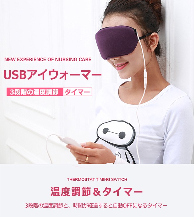 商品説明USBに繋いで“あったか”目元ケア♪3段階の温度調整&2段階のタイマーが付いて便利に使用できるアイケア用品です。