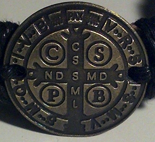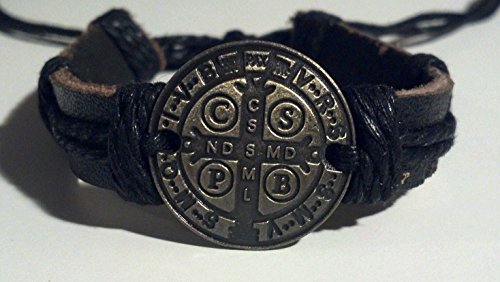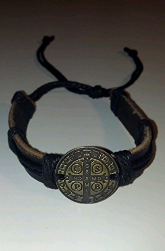 Bronze Tone Saint Benedict Leather Bracelet Adjustable Fit