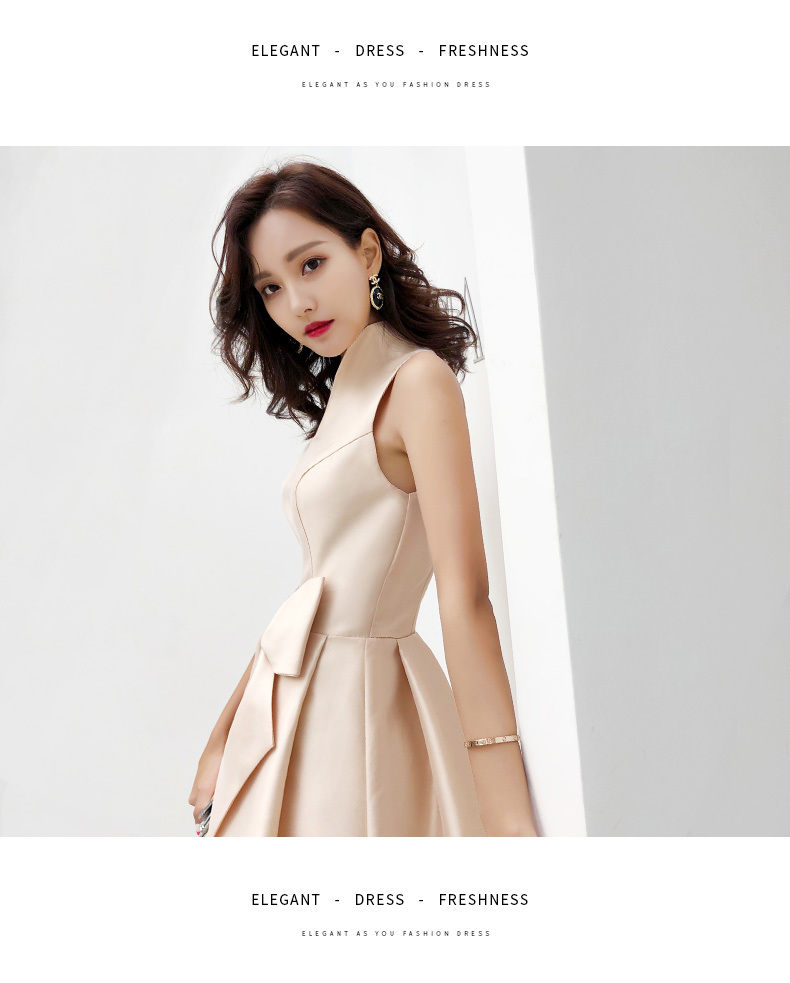 スタンドカラーが大人の感じになるノースリーブのドレス。