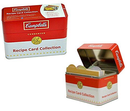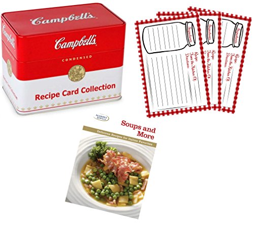 Campbell's Condensed Soup Recipe Cards Classic Tin Holder, 1 Soups and More Recipes Cookbook, 15 4x6 Blank Recipe Cards Gift Bundle - Perfect as Christmas, Wedding, Birthday, Hostess Presents