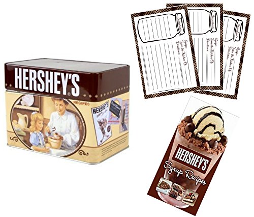 Hershey's Recipe Cards Tin Holder - 99 Recipes Included, 1 Hershey's Syrup Recipes Cookbook, 15 4x6 Blank Recipe Cards Vintage Gift Bundle - Best Christmas, Wedding, Hostess Presents