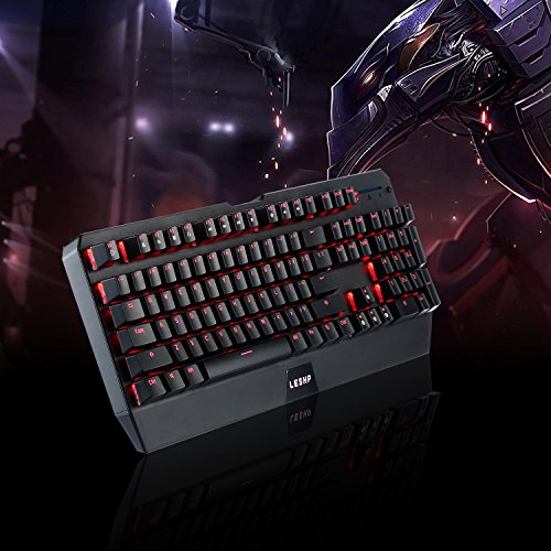 Mechanical Keyboard, LESHP 2.4GHZ USB Backlit Gaming Keyboard Red Colors Backlight LED Wired Gaming Mechanical Keyboard with 104 keys No Driver Required -Black