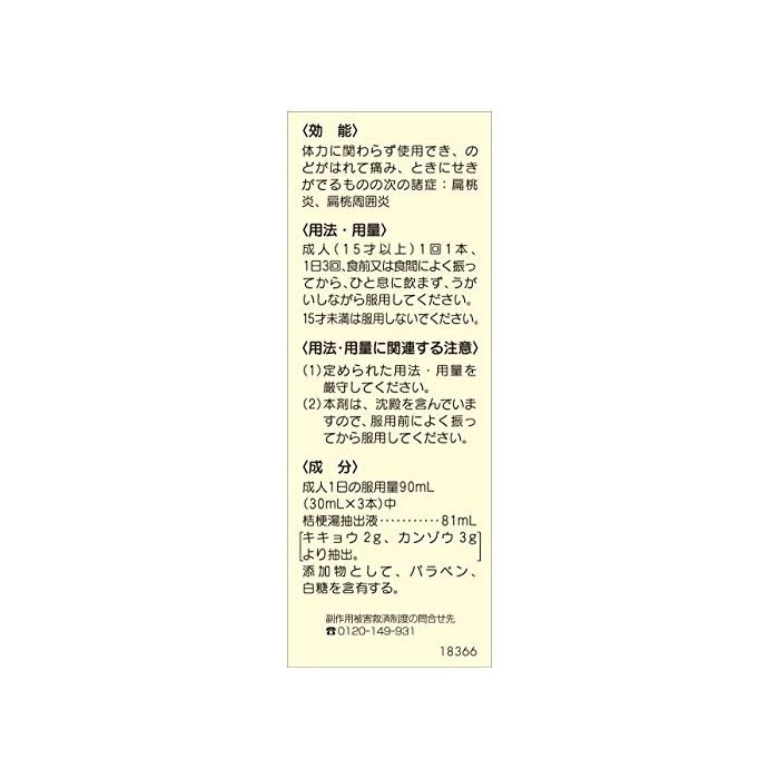 원본상품명: 【第2類??品】クラシエ桔梗湯?服液 30mL×3
