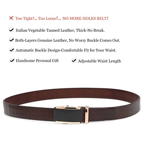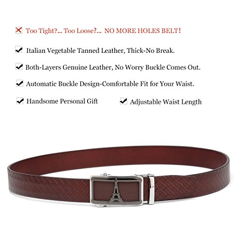 -. Feature : Genuine Italian Leather - A designer belt for men who value class, style and sophistication, each one is made with Italian vegetable-tanned leather. / Polished Metal Buckle - The perfect addition to jeans or casual wear, these men's belts boast an automatic, heavy-duty buckle for secure, adjustable comfort. / Adjustable Waist Length - These men's leather belts are easily adjusted to fit waist measurements ranging from different sizes for proper, relaxed support. / Handsome Personal Gift - This leather dress belt for men makes a wonderful birthday, anniversary, holiday, or Christmas gift for guys of all ages. / Reliable 1-Year Warranty - Along with precision craftsmanship and unmatched durability, these Italian leather belts are backed by a 1-year trusted warranty.