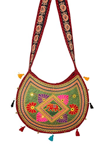 -. Brand : Tribe Azure Fair Trade -. Color : Orange Red -. Department : womens -. Feature : EXQUISITE, BEAUTIFUL, UNIQUE HANDMADE - Bright Organic Cotton Fabric Quilted Free Motion Style in High Contrast. Woven Tapestry With Pom Pom Tassels - Zipper On Top / Authentic Tribe Azure Fair Trade Product by Tribe Azure Artisans - Branded and Licensed exclusively by Tribe Azure (Beware of unlicensed sellers) / ROOMY & SPACIOUS FOR ALL YOUR SMALL ESSENTIALS - Width 15 inches x Length 12 inches. Strap drops down 19 inches length. Model is 5 ft 4 inches / Boho Crossbody Shoulder Bag - Spacious, roomy and functional / Zipper on Top. Black Cotton lining Inside. Each bag is individually embroidered so expect slight color variation in the embroidery -. Model : orndrum-8574 -. MPN : 4331339865 -. PartNumber : 4331339865 -. ProductGroup : Shoes -. ProductTypeName : HANDBAG -. Size : Medium -. Title : Tribe Azure Sling Crossbody Hobo Women Shoulder Bag Red Embroidered Hippie Beach Satchel Tote