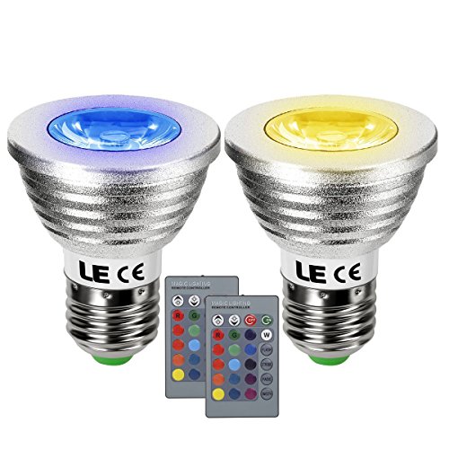 LE Pack of 2 Units 3W Dimmable RGB MR16 E27 LED Bulbs, Color Changing, 30° Beam Angle, 16 Color Choices, Remote Controller Included, LED Light Bulbs, LED Spot light, Spot Bulb