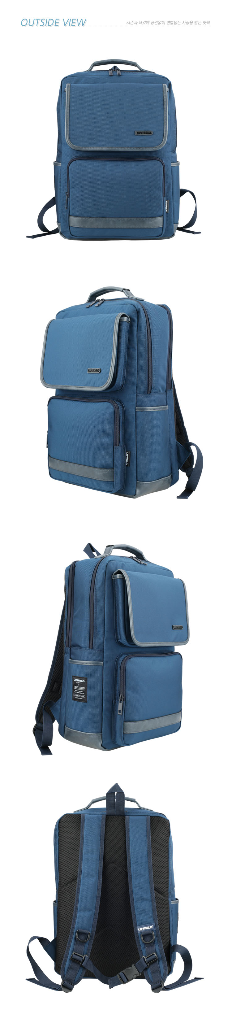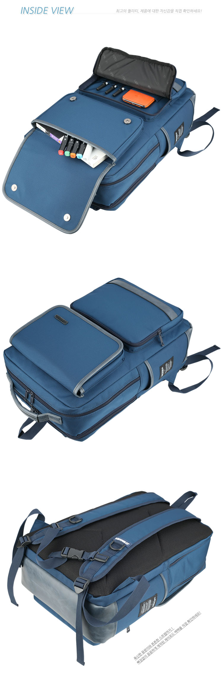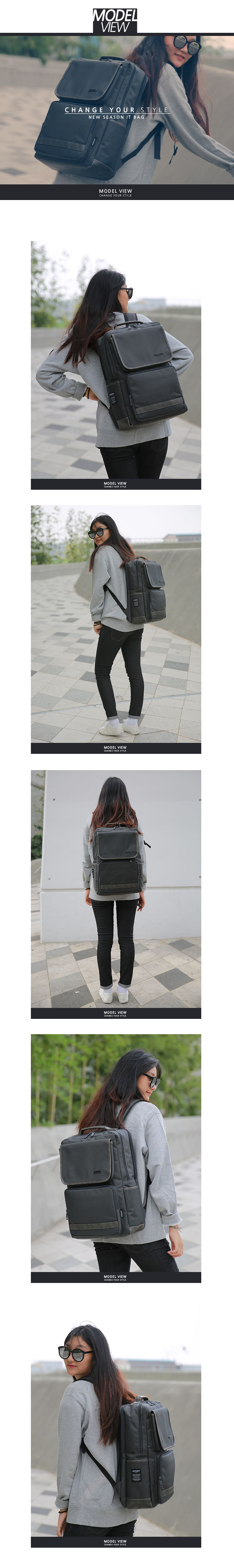 Men`s High Quality Faux Leather Trimmed Accents Front Pockets Fabric Simple Backpack Laptop Bag Schoolbag Medium Bookbag 3Colors Korean Bag