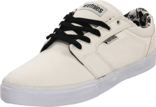 Studio : Etnies Publisher : Etnies Binding : Shoes Amazon.com Keep it laid back with the Barge skate shoe from Etnies. Cool canvas combats the rising mercury while the durable sole and toe bumper invite all the action you can throw at them. The no-stitch toe adds an additional boost of wear resistance so you keep this skate shoe stays in the game longer. 0