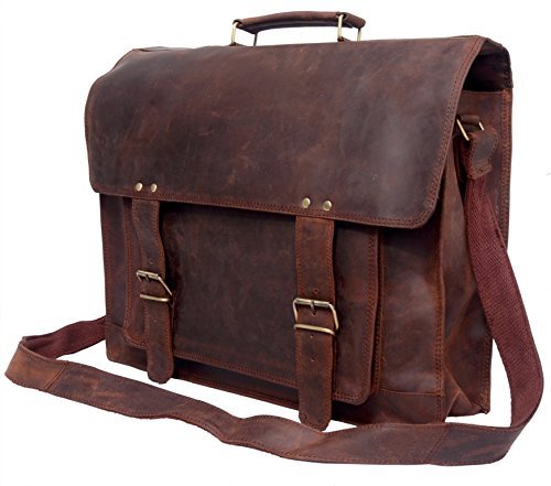 -. Title : CS Leather Men's Rustic Leather Briefcase Travel Office Bag Macbook Medium Brown