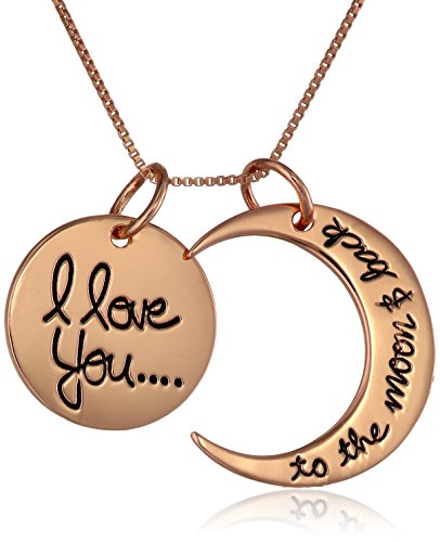 - Title : Sterling Silver Rose-Gold Flashed "I Love You To The Moon and Back" Two Piece Pendant Necklace, 18"