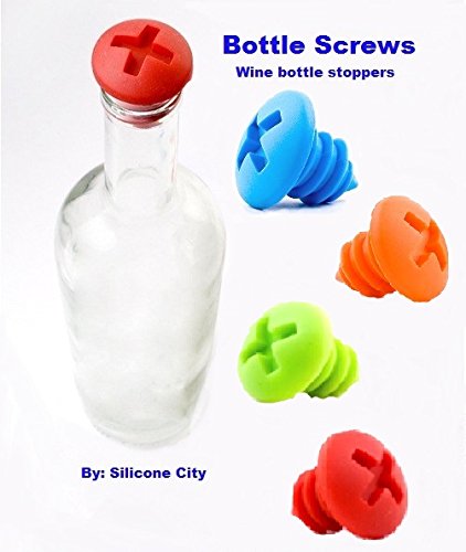 -. Brand : Silicone City -. Feature : best Silicone wine stopper -. Label : Silicone City -. Manufacturer : Silicone City -. Model : Silicone Screws -. PackageQuantity : 2 -. ProductGroup : Kitchen -. ProductTypeName : KITCHEN -. Publisher : Silicone City -. Size : one size fits most wine bottles -. Studio : Silicone City -. Title : FDA Approved Silicone Wine Bottle Stoppers (Set of 4) - Keep your favorite wine or spirits fresh and preserve the taste with the only FDA approved Silicone Wine stopper by Silicone City