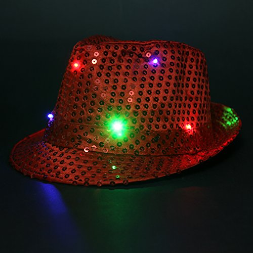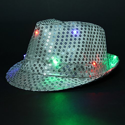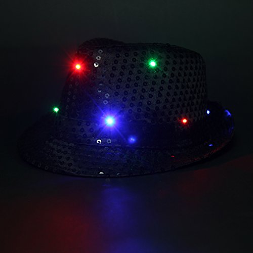 La Vogue Women LED Fedora Cap Sequin Jazz Hat Performing Dance Hat(With Battery)