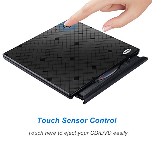 CIpotZIZ USB 3.0 External DVD Drive Touch Control Ultra Slim Portable CD DVD DVD-RW Burner Writer Player for Mac, Linux, Windows 2000/XP/Vista/10/7/8 Laptop,Desktop and Notebook (Touch Version-Black)