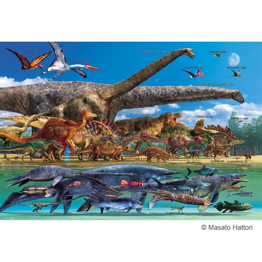 fk094igrjs陸上、水中の恐竜の大きさをくらべて学べるジグソーパズルです サイズ 完成サイズ:72×49cm 個装サイズ:5×29×22cm 重量 個装重量:880g 製造国 日本 恐竜のジグソーパズル 陸上、水中の恐竜の大きさをくらべて学べるジグソーパズルです