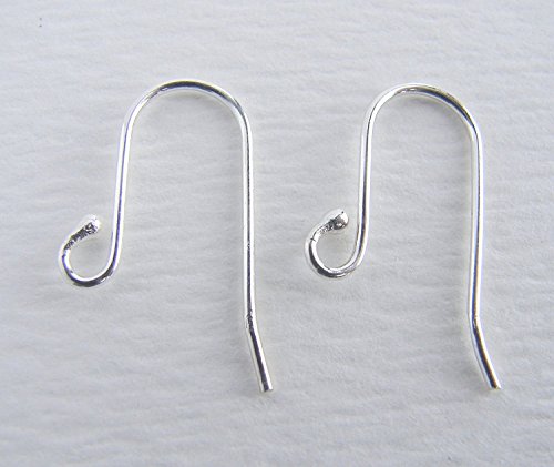 .925 Sterling Silver Ear Wire with 1.6 mm Ball ~ 10 pcs/5 pairs French Hook Earring ~ Wire 0.6 mm/AWG 22 Gauge ~ Size 13 x 18 millimeters by BEEZZY BEEDZ (bonus - 5 pairs plastic ear nuts)