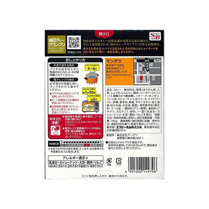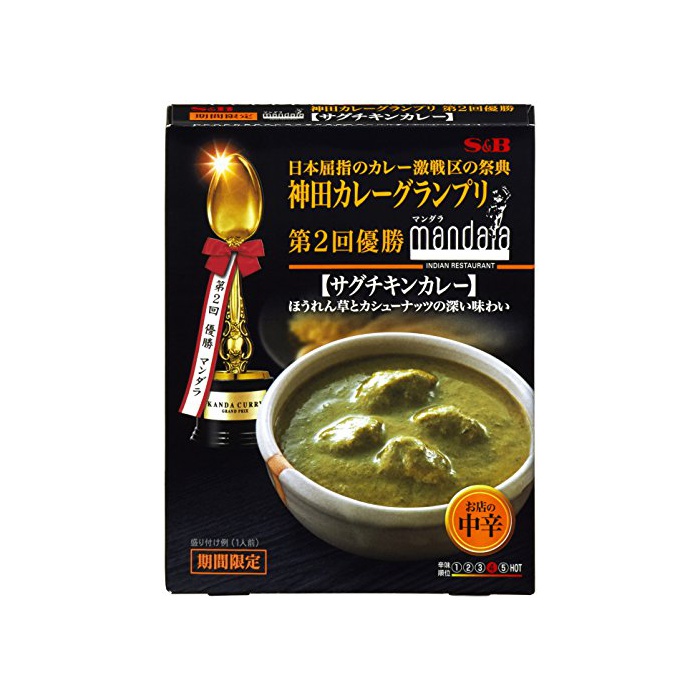 원본상품명: 神田カレ?グランプリ マンダラ サグチキンカレ? お店の中辛 180g×5個