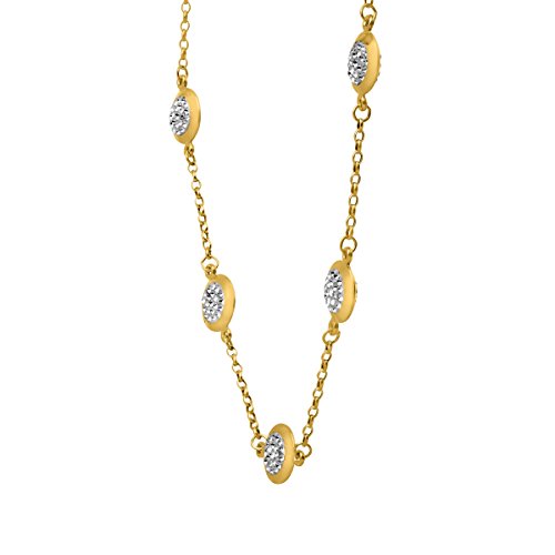 STATION NECKLACE: Crafted in 10K gold-bonded sterling silver, each station is set with white Swarovski crystals