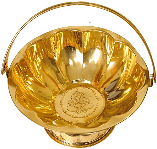 Puja Flowers Basket (with Ganesha Image Inside) - Brass