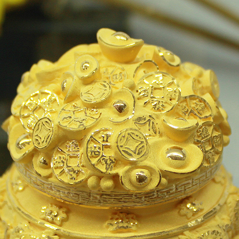 绒沙金聚宝盆摆件 招财金元宝摆设 风水家居饰品开业迁居新年礼品
