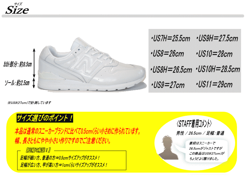 | サイズ | 作り⇒やや小さめ 【サイズ選びのポイント!】 足幅が細い方、普通の方⇒0.5cmくらいサイズアップがオススメ! 足幅が広い方、甲が高い方⇒1.0cmくらいサイズアップがオススメ! |